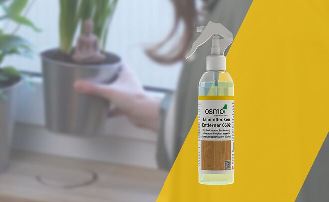 Osmo Tanninflecken Entferner ist besonders zu empfehlen für Holzfußböden und -möbel aus Eiche oder anderen stark gerbsäurehaltigen Holzarten.