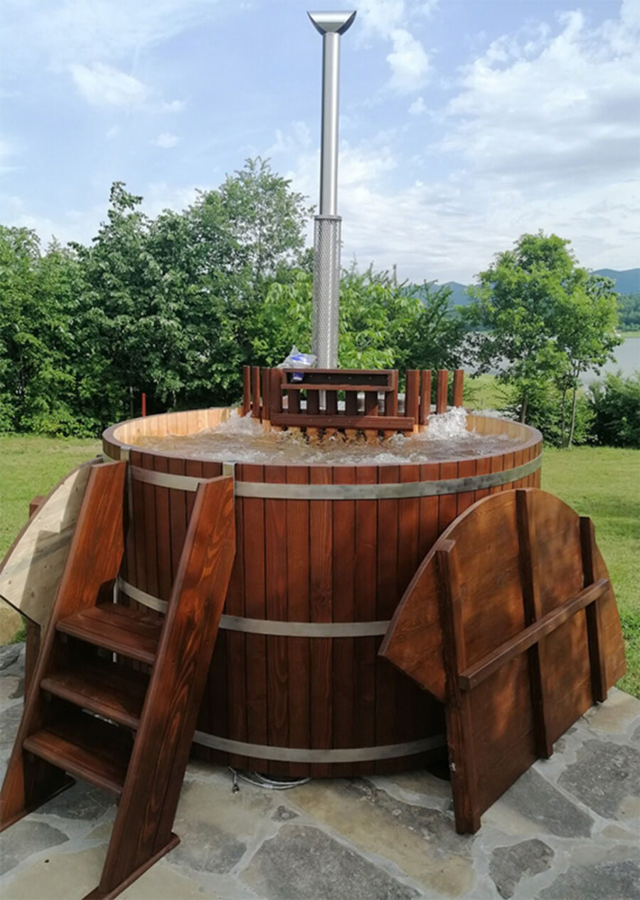 Solche Outdoor-Saunas und Jacuzzis sind die Spezialität der Spa Zone Ltd. Bei dem Bau ihrer Außenholzprodukte, weiß die in Bulgarien sesshafte Firma, dass sie Sonne, Wind, Schnee und Regen berücksichtigen müssen. Deshalb verwendet die Manufaktur vorzugsweise europäische Lärche und Fichte als Außenholzverkleidung und -elemente. Diese Nadelholzarten lassen sich gut und leicht verbauen, dazu beinhalten sie Harze und Öle, die als eine natürliche Imprägnierung fungieren.