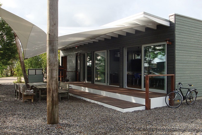 En appliquant des couches de finition couvrantes, par exemple avec la Peinture Bois Façades et Jardins Osmo, vous obtiendrez un effet de couleur intense pour les teintes grises et des contrastes nets entre les différentes surfaces colorées. Cette peinture sèche très rapidement et peut être appliquée au pistolet. La Peinture de Campagne Osmo est disponible dans un grand choix de couleurs. Les deux finitions sont résistantes aux intempéries et masquent la teinte du bois tout en laissant apparaître sa structure. Toutes les teintes de la même ligne de produits sont miscibles entre elles.
